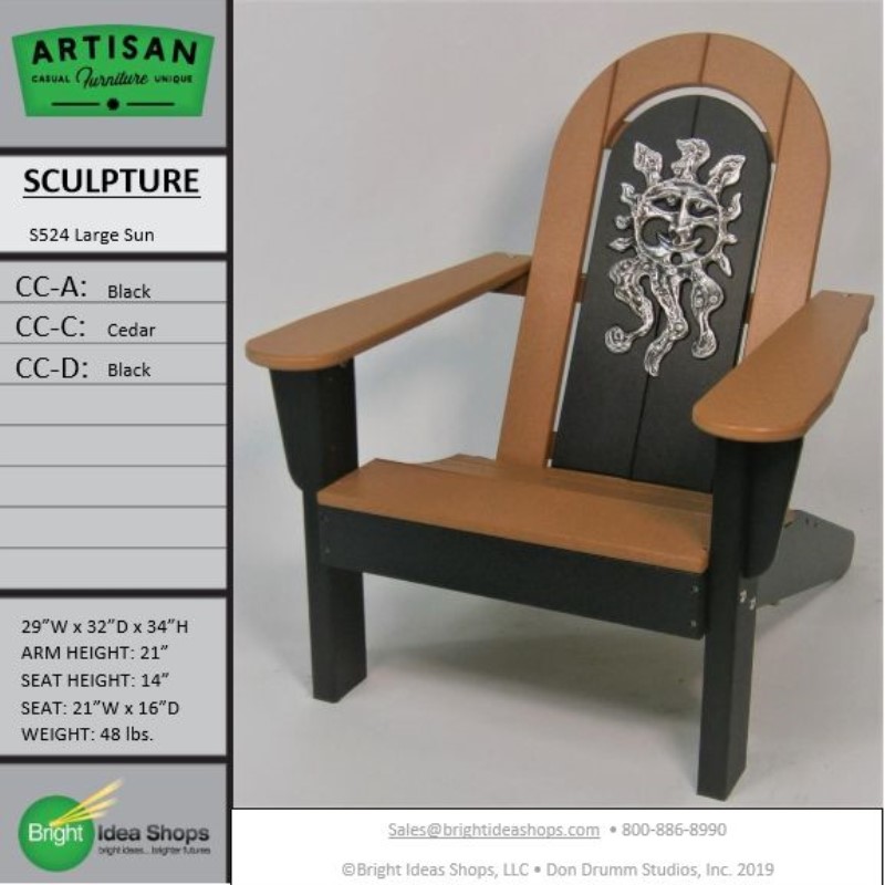 Our Artisan Chair is uniquely created by combining recycled plastic lumber with the original art works of Don Drumm, America's master metal sculptor and designer of aluminum castings.