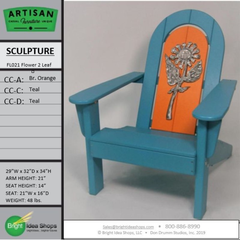 Our Artisan Chair is uniquely created by combining recycled plastic lumber with the original art works of Don Drumm, America's master metal sculptor and designer of aluminum castings.