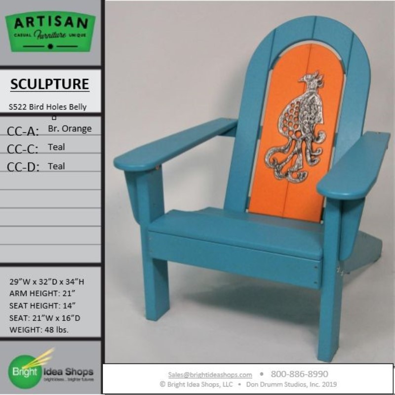 Our Artisan Chair is uniquely created by combining recycled plastic lumber with the original art works of Don Drumm, America's master metal sculptor and designer of aluminum castings.