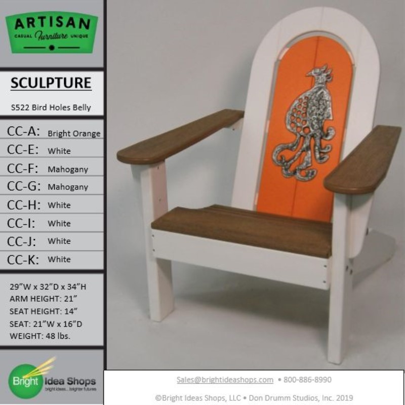 Our Artisan Chair is uniquely created by combining recycled plastic lumber with the original art works of Don Drumm, America's master metal sculptor and designer of aluminum castings.