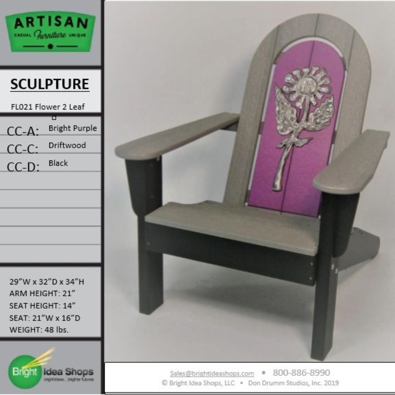 Our Artisan Chair is uniquely created by combining recycled plastic lumber with the original art works of Don Drumm, America's master metal sculptor and designer of aluminum castings.
