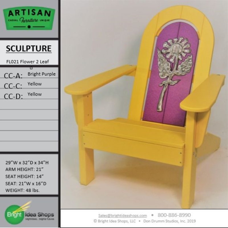 Our Artisan Chair is uniquely created by combining recycled plastic lumber with the original art works of Don Drumm, America's master metal sculptor and designer of aluminum castings.