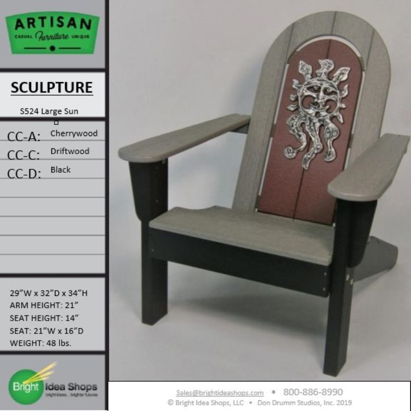 Our Artisan Chair is uniquely created by combining recycled plastic lumber with the original art works of Don Drumm, America's master metal sculptor and designer of aluminum castings.