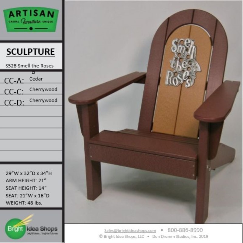 Our Artisan Chair is uniquely created by combining recycled plastic lumber with the original art works of Don Drumm, America's master metal sculptor and designer of aluminum castings.