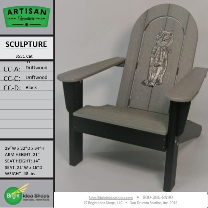 Our Artisan Chair is uniquely created by combining recycled plastic lumber with the original art works of Don Drumm, America's master metal sculptor and designer of aluminum castings.