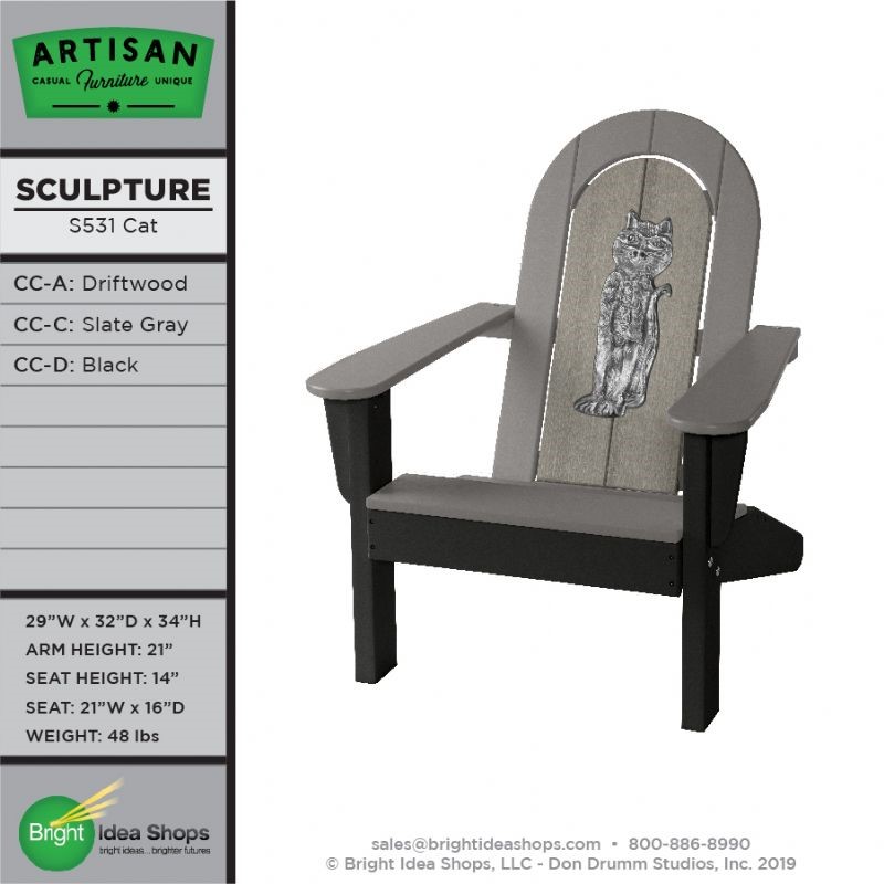 Our Artisan Chair is uniquely created by combining recycled plastic lumber with the original art works of Don Drumm, America's master metal sculptor and designer of aluminum castings.