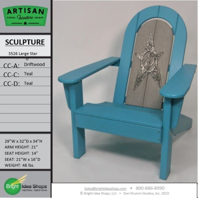 Our Artisan Chair is uniquely created by combining recycled plastic lumber with the original art works of Don Drumm, America's master metal sculptor and designer of aluminum castings.
