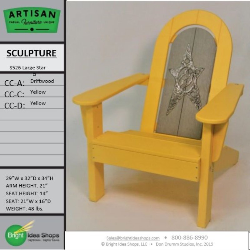 Our Artisan Chair is uniquely created by combining recycled plastic lumber with the original art works of Don Drumm, America's master metal sculptor and designer of aluminum castings.
