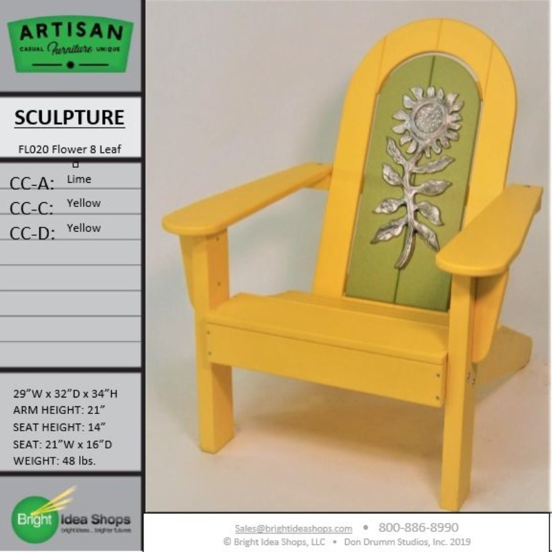Our Artisan Chair is uniquely created by combining recycled plastic lumber with the original art works of Don Drumm, America's master metal sculptor and designer of aluminum castings.