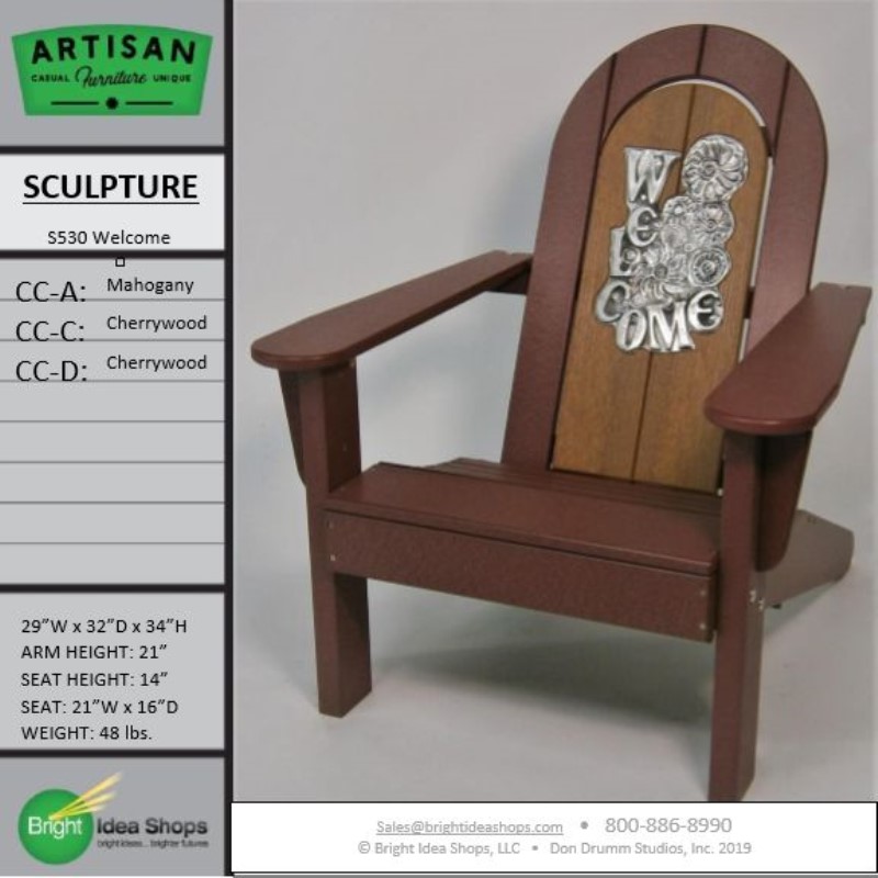 Our Artisan Chair is uniquely created by combining recycled plastic lumber with the original art works of Don Drumm, America's master metal sculptor and designer of aluminum castings.