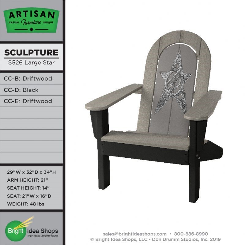Our Artisan Chair is uniquely created by combining recycled plastic lumber with the original art works of Don Drumm, America's master metal sculptor and designer of aluminum castings.