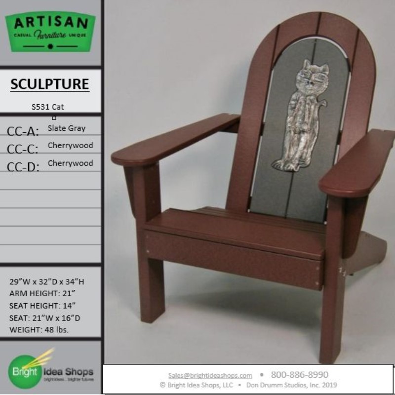 Our Artisan Chair is uniquely created by combining recycled plastic lumber with the original art works of Don Drumm, America's master metal sculptor and designer of aluminum castings.