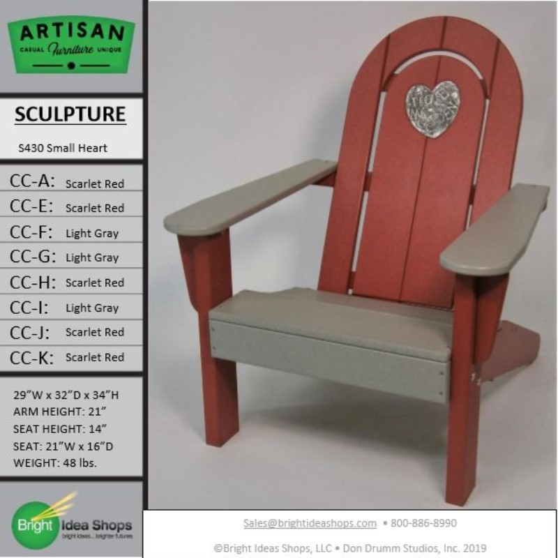 Our Artisan Chair is uniquely created by combining recycled plastic lumber with the original art works of Don Drumm, America's master metal sculptor and designer of aluminum castings.