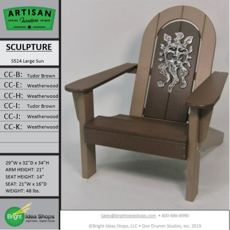 Our Artisan Chair is uniquely created by combining recycled plastic lumber with the original art works of Don Drumm, America's master metal sculptor and designer of aluminum castings.