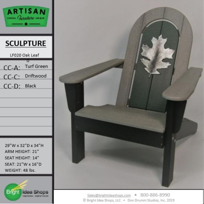 Our Artisan Chair is uniquely created by combining recycled plastic lumber with the original art works of Don Drumm, America's master metal sculptor and designer of aluminum castings.