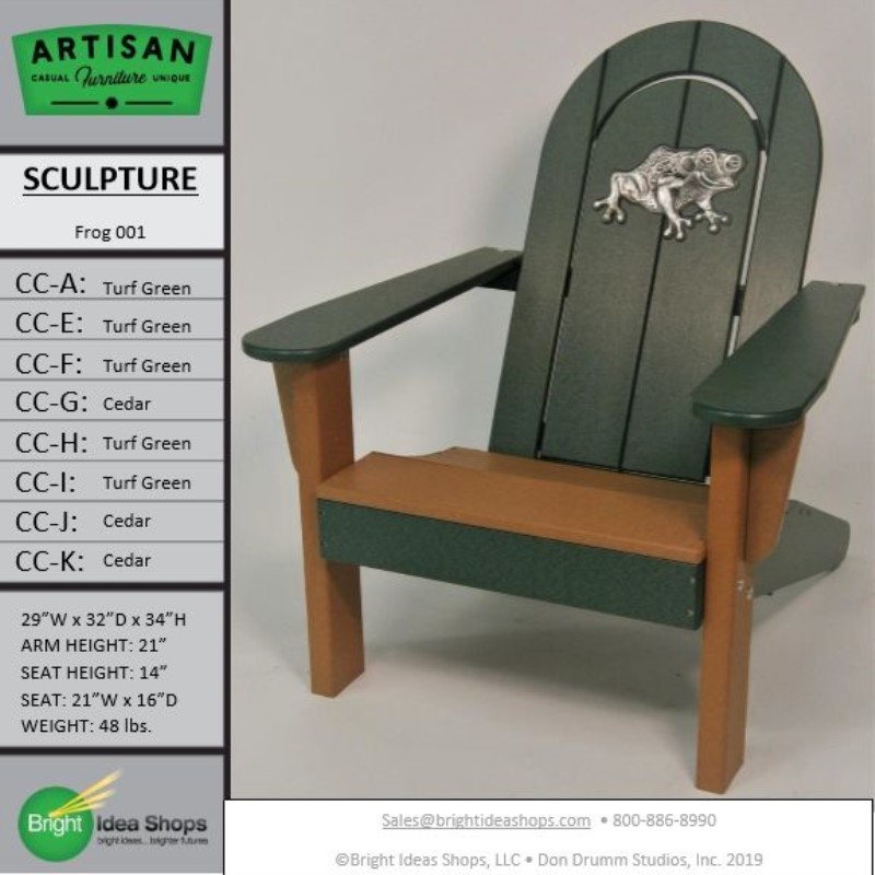 Our Artisan Chair is uniquely created by combining recycled plastic lumber with the original art works of Don Drumm, America's master metal sculptor and designer of aluminum castings.
