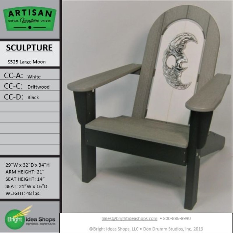 Our Artisan Chair is uniquely created by combining recycled plastic lumber with the original art works of Don Drumm, America's master metal sculptor and designer of aluminum castings.