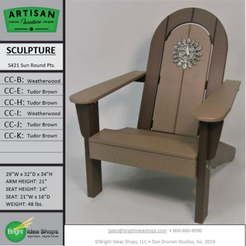 Our Artisan Chair is uniquely created by combining recycled plastic lumber with the original art works of Don Drumm, America's master metal sculptor and designer of aluminum castings.