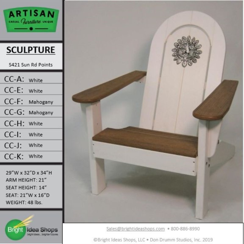 Our Artisan Chair is uniquely created by combining recycled plastic lumber with the original art works of Don Drumm, America's master metal sculptor and designer of aluminum castings.