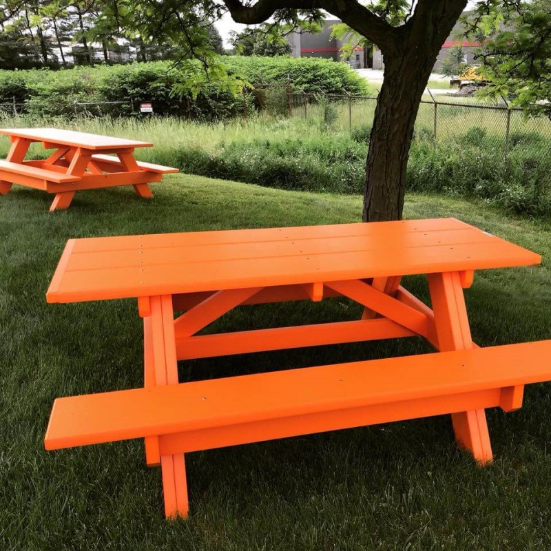 This table may seem familiar to you. Well, it should. The Bright Idea Shops has decided to jazz up our color options by offering a couple of our most popular products in these outrageously bright colors. Let your imagination take over as you decide how to pair one or two of our 17 different color options together! Match up your school colors to show team spirit on campus or mimic your favorite professional sports teams theme to make for the perfect game day picnic setting. Our Classic 6' Picnic Table is made with durable plastic lumber and is the definition of a traditional picnic table with all the low maintenance qualities you come to expect from Bright Idea Shops! If these options don't suit your needs, take a look at our heavy-duty picnic tables collection or even our commercial site furnishings. For help with assembly review our YouTube video!