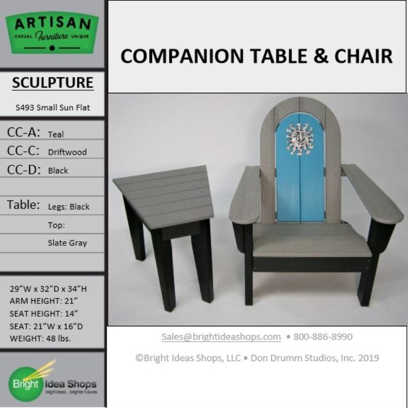 Our Artisan Furniture is uniquely created by combining recycled plastic lumber with the original art works of Don Drumm, America's master metal sculptor and designer of aluminum castings.