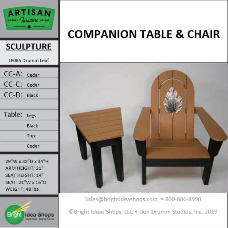 Our Artisan Chair is uniquely created by combining recycled plastic lumber with the original art works of Don Drumm, America’s master metal sculptor and designer of aluminum castings.
